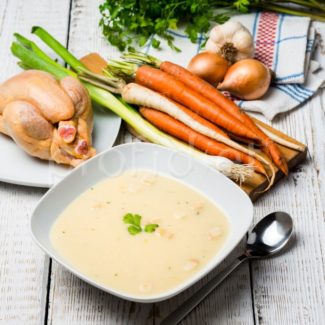 * = % denného referenčného príjmuZLOŽENIE: Mliečne bielkoviny (emulgátor: slnečnicový lecitín), sójové bielkoviny, arómy (obsahujú mlieko, pšenicu, jačmeň, sóju), pečené krutóny 4,5 % (pšeničná múka, slnečnicový olej, pšeničný lepok, jedlá soľ, cukor, droždie), zvýrazňovač chuti (glutamán sodný), jedlá soľ, zahusťovadlo (xantánová guma), vitamíny (C, B3, E, B5, B6, B2, B1, A, B9, B8, B12), maltodextrín, protihrudkujúca látka (uhličitan horečnatý), petržlen, farbivo (kurkumín).ALERGÉNY: Výrobok obsahuje mlieko a sóju, lepok (pšenicu, jačmeň).Príprava a použitie: Obsah vrecka 25 g vysypte do 180 ml studenej vody a dôkladne premiešajte. Potom ohrievajte 1 minútu v mikrovlnnej rúre a ihneď skonzumujte.Upozornenie: Nepoužívať ako jediný zdroj potravy. Nevyhnutnou súčasťou výživy spotrebiteľa majú byť aj bežné pokrmy a potraviny, rovnako ako zdravý životný štýl. Počas užívania výrobku dodržujte dostatočný príjem tekutín (min. 1,5 l/deň) a riaďte sa odporúčaním odborníka so skúsenosťami v oblasti výživy ľudí.Skladovanie: Skladujte v tme a suchu pri teplote 15 – 22 °C, chráňte pred priamym slnečným žiarením.Krajina pôvodu: Francúzsko