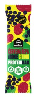 Proteínová tyčinka Aronie a citrón je vegánska proteínová tyčinka, so zmesou viac rastlinných proteínov.